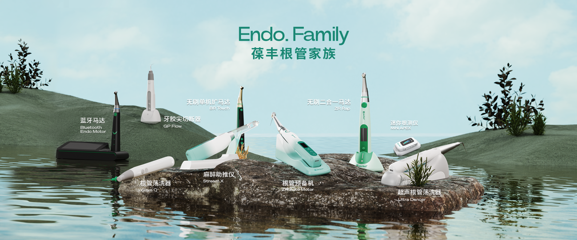 電子產(chǎn)品:根管預(yù)備機(jī);根管測(cè)量?jī)x;根管蕩洗器;熱熔牙膠充填系統(tǒng);無(wú)線(xiàn)便攜式麻醉儀;生物陶瓷治療輔助工具。